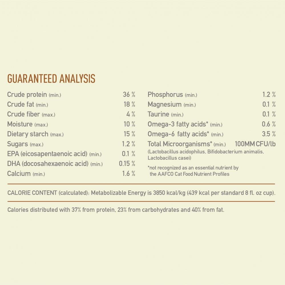 -Free of gluten, potato, or tapioca, and rich in animal protein, providing nutrients naturally, the way your cat would acquire them in nature