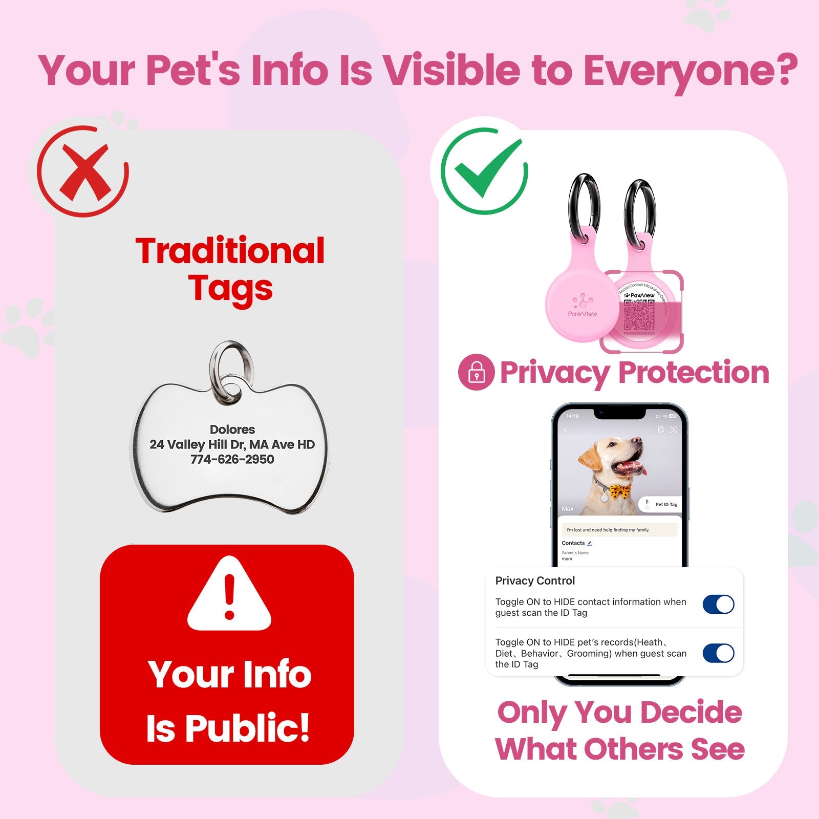 Instant Pet Location Alert Email: The PawView NFC and QR Code Smart Pet ID Tag not only comes with anti-loss functionality for added security for your furry friend but also provides peace of mind. In case your pet goes astray, anyone finding them can scan the QR code or recognize NFC to view your contact information. Simultaneously, you receive notifications and your pet's real-time location.