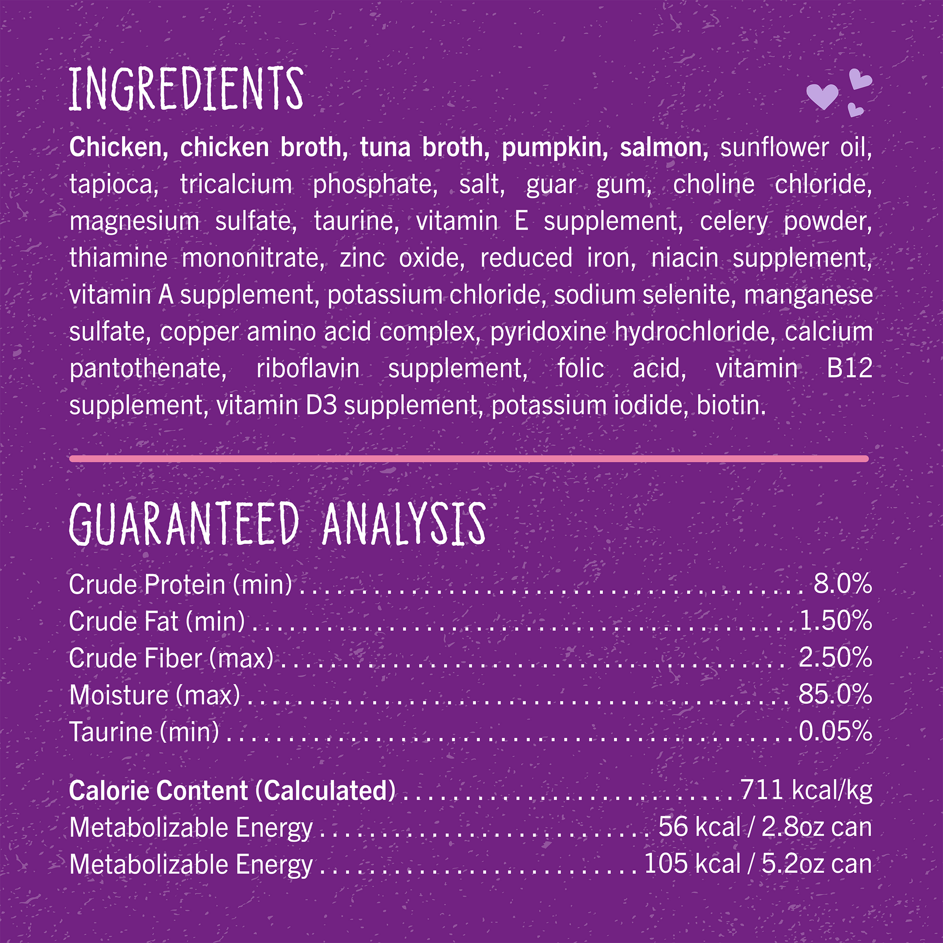 - Free from grains, legumes, potatoes, carrageenan, wheat, meat by-products, soy, artificial colors, preservatives and flavors