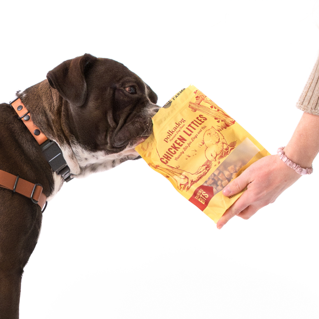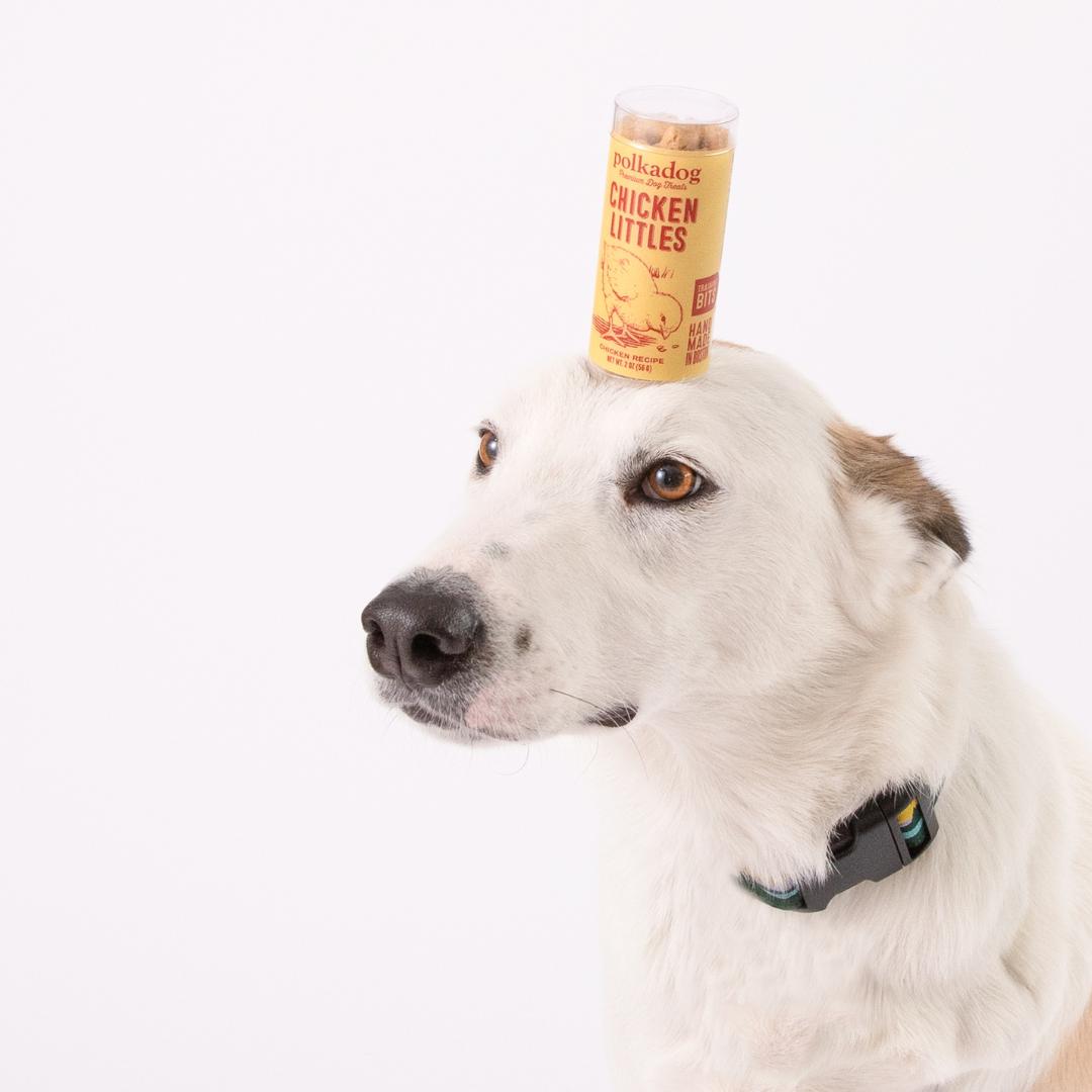 We’re fans of the simple life at Polkadog. We approach our handmade treat creations the same way. Tiny in size but not in flavor, our three-ingredient Chicken Littles are perfect for the canine or feline that likes to keep it real. We use only the highest quality, all-natural, U.S.-raised chicken breast, then mix it with wholesome brown rice and a dash of potato flour. Dehydrated daily at our Boston Fish Pier kitchen, these chicken dog treats are as healthy and straightforward as it gets.