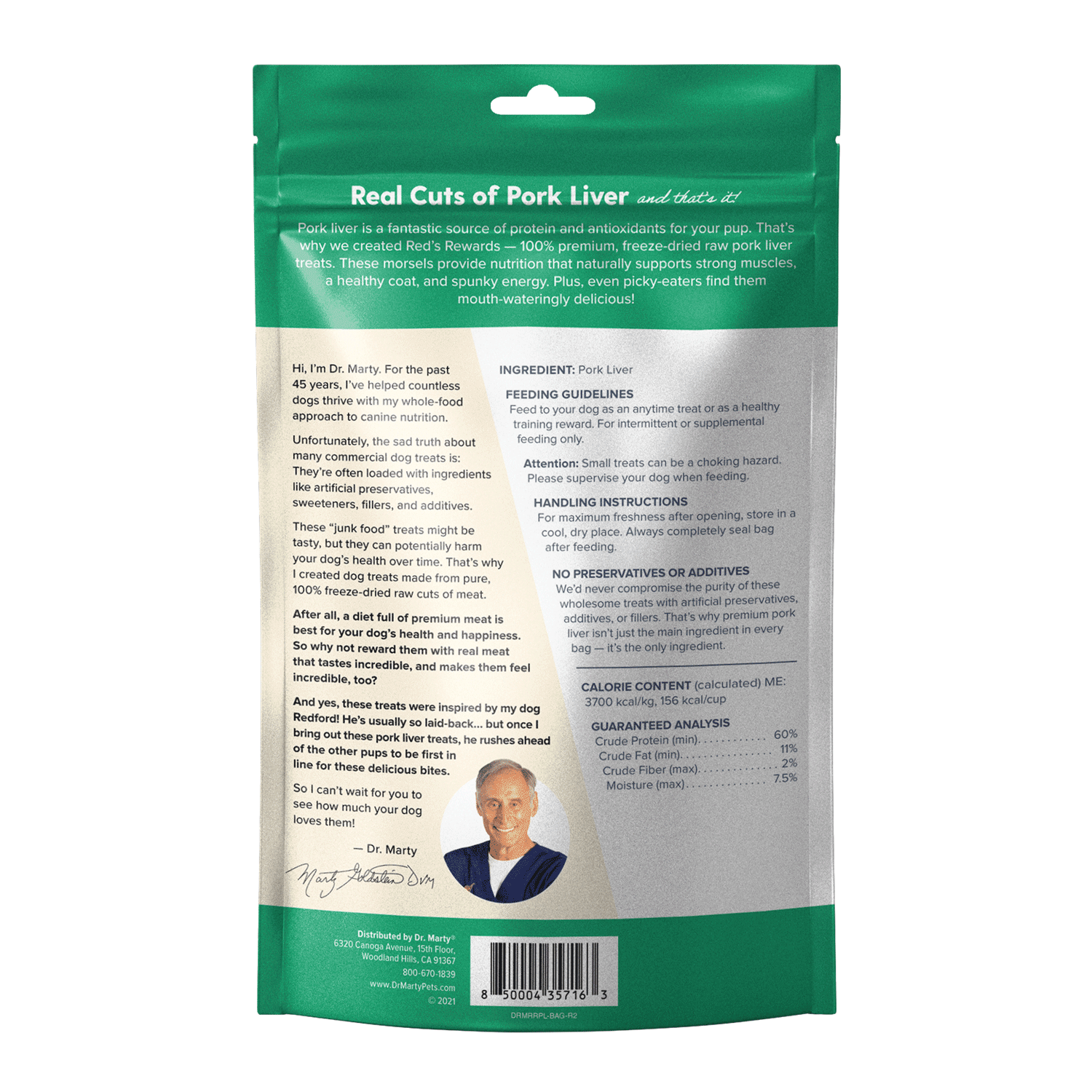 DR. MARTY Red’s Rewards Freeze-Dried Raw Pork Liver Dog Treats