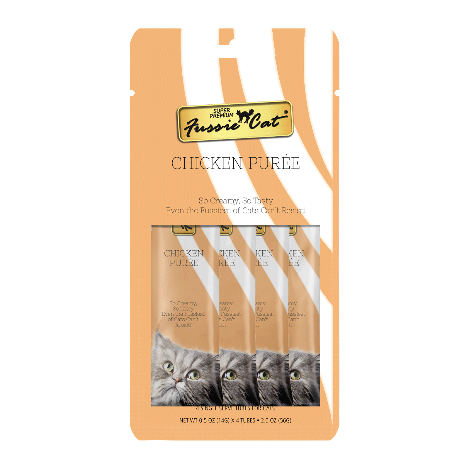 Fussie Cat Chicken Purée is love at first lick. Creamy in texture and rich in taste, this indulgent, flavorsome puree will make even the Fussiest of Cats demand more! Fussie Cat Chicken Purée is an easy-to-feed cat treat with essential vitamin E for your cat’s diet to support healthy skin and coat.