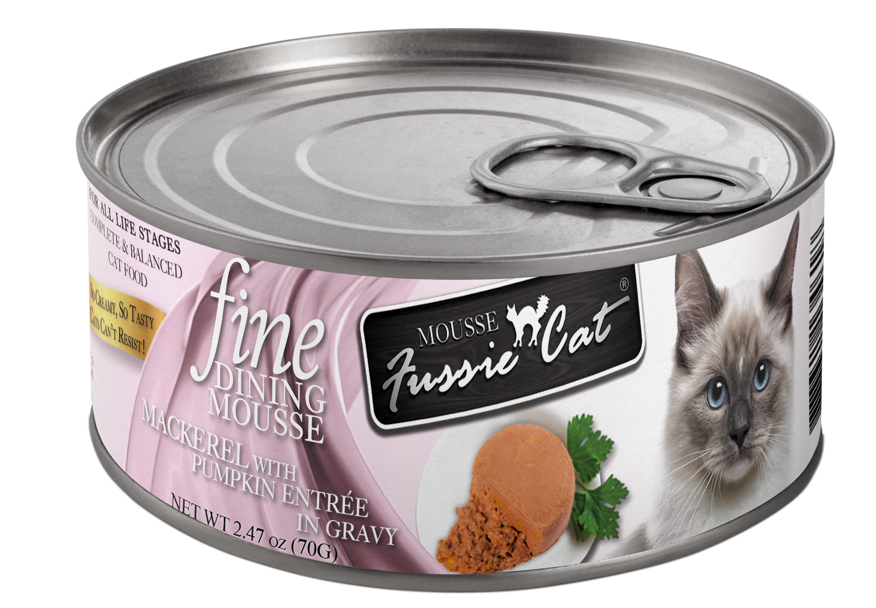 Fussie Cat Fine Dining Mousse Mackerel With Pumpkin Entree In Gravy 2.47-oz, Wet Cat Food, Case Of 24