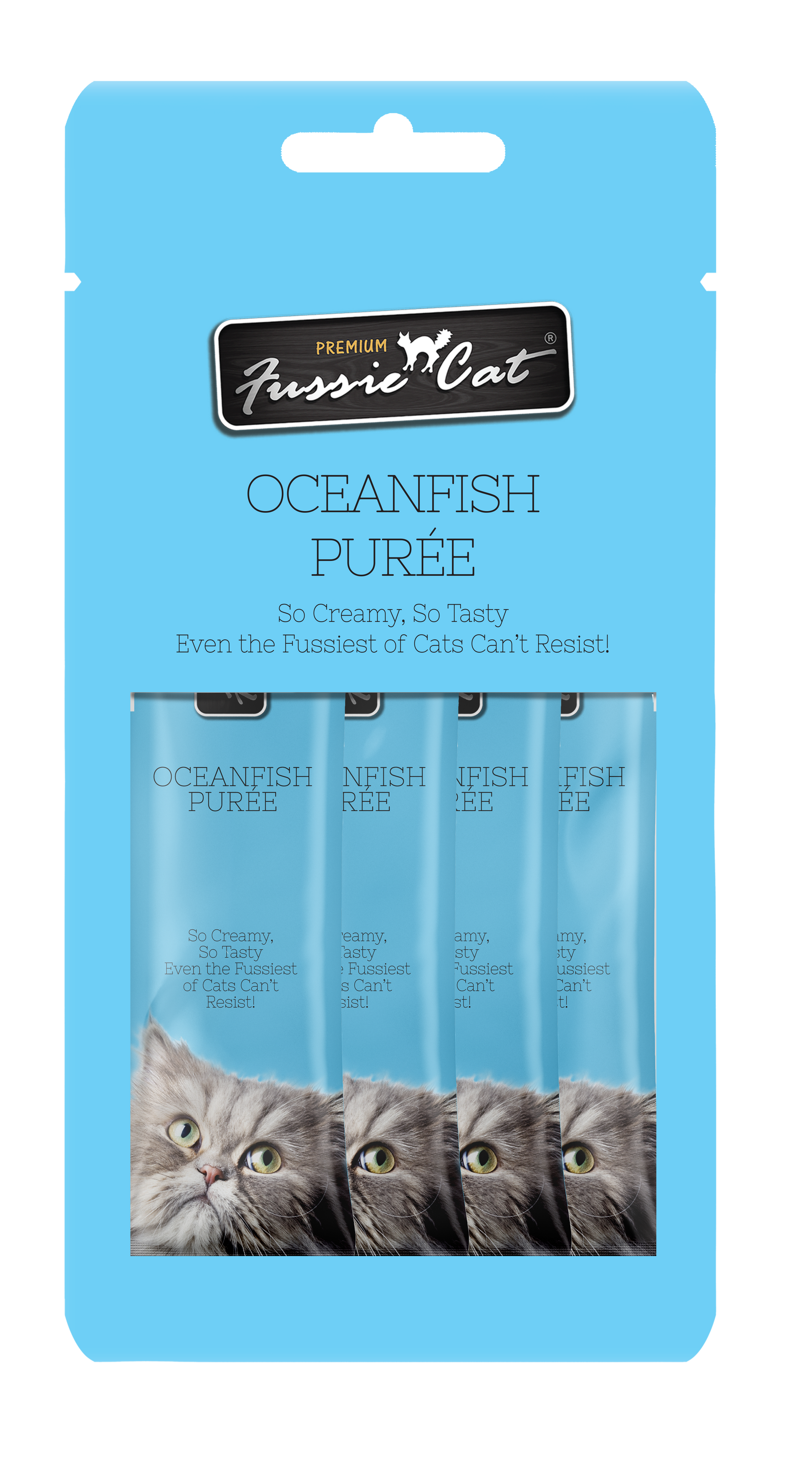 Creamy in texture and rich in taste, this indulgent, flavorsome puree will make even the Fussiest of Cats demand more! Fussie Cat Oceanfish is an easy-to-feed cat treat with essential vitamin E for your cat’s diet to support healthy skin and coat.