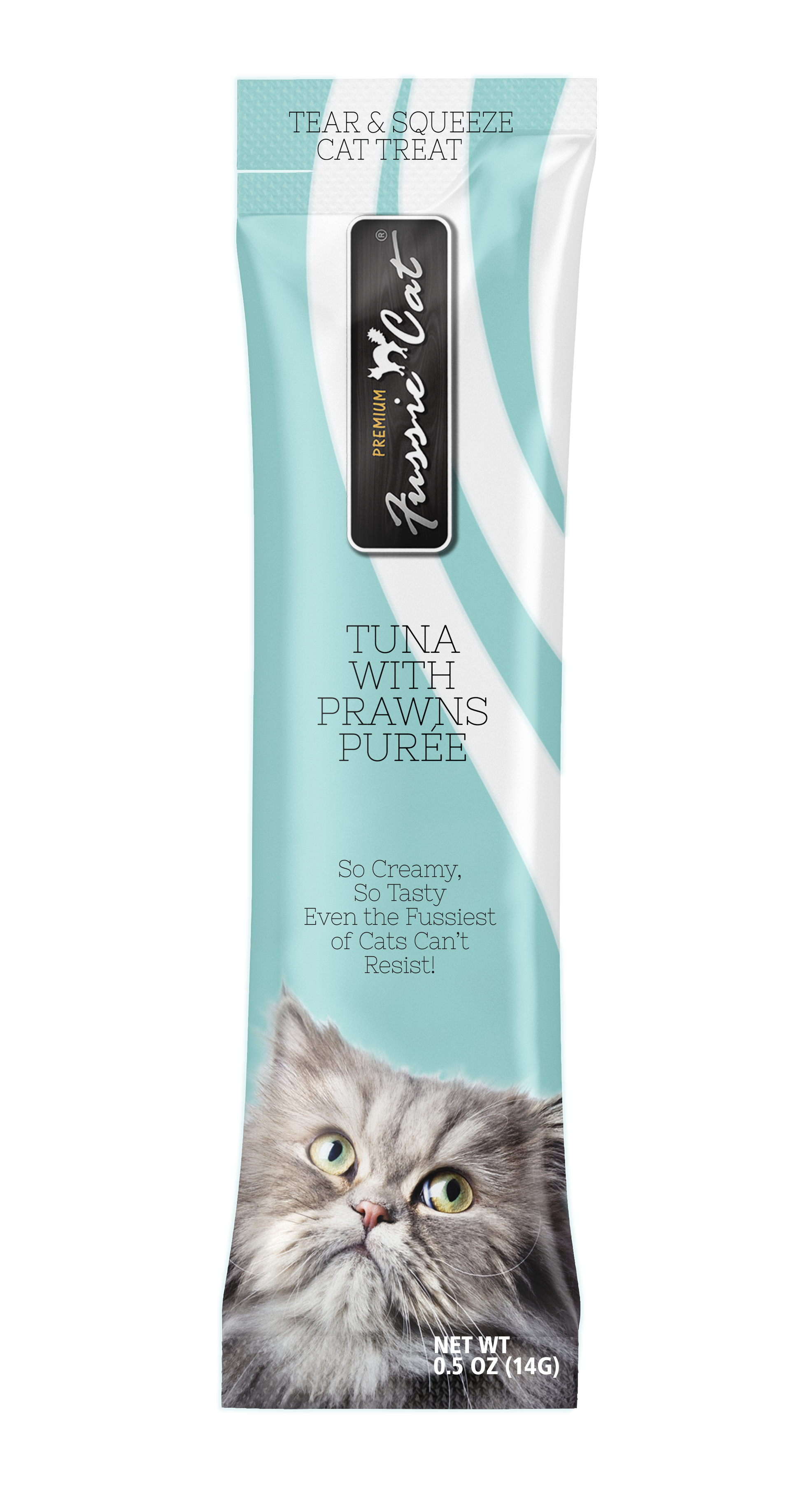 Fussie Cat Tuna with Prawns Purée is love at first lick. Creamy in texture and rich in taste, this indulgent, flavorsome puree will make even the Fussiest of Cats demand more! Fussie Cat Tuna with Prawns Purée is an easy-to-feed cat treat with essential vitamin E for your cat’s diet to support healthy skin and coat.