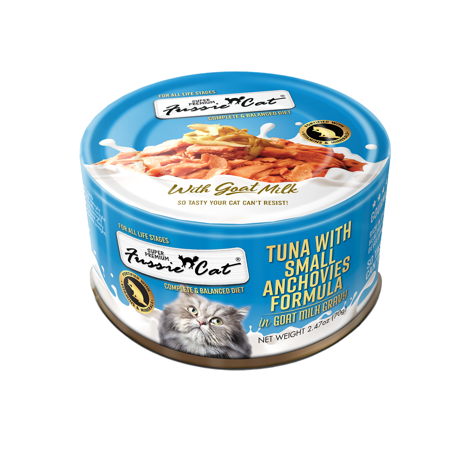 Fussie Cat Tuna With Small Anchovies Formula In Goat Milk Gravy 2.47-oz, Wet Cat Food, Case Of 24