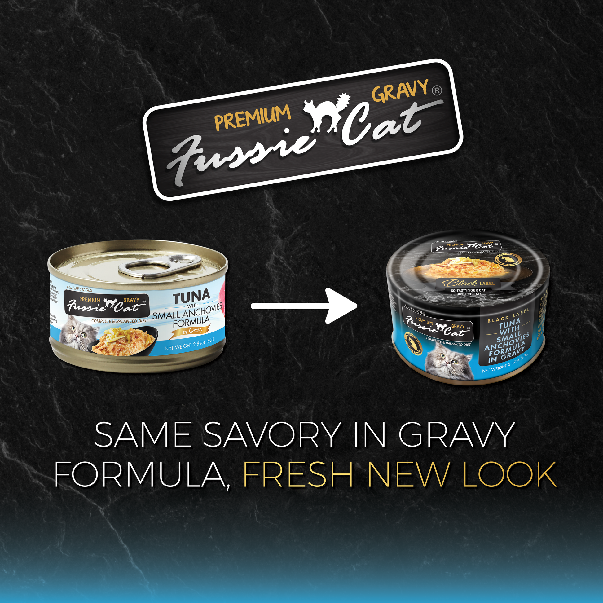 Fussie Cat Tuna With Small Anchovies Formula in Gravy, Wet Cat Food, 2.82-oz Case Of 24
