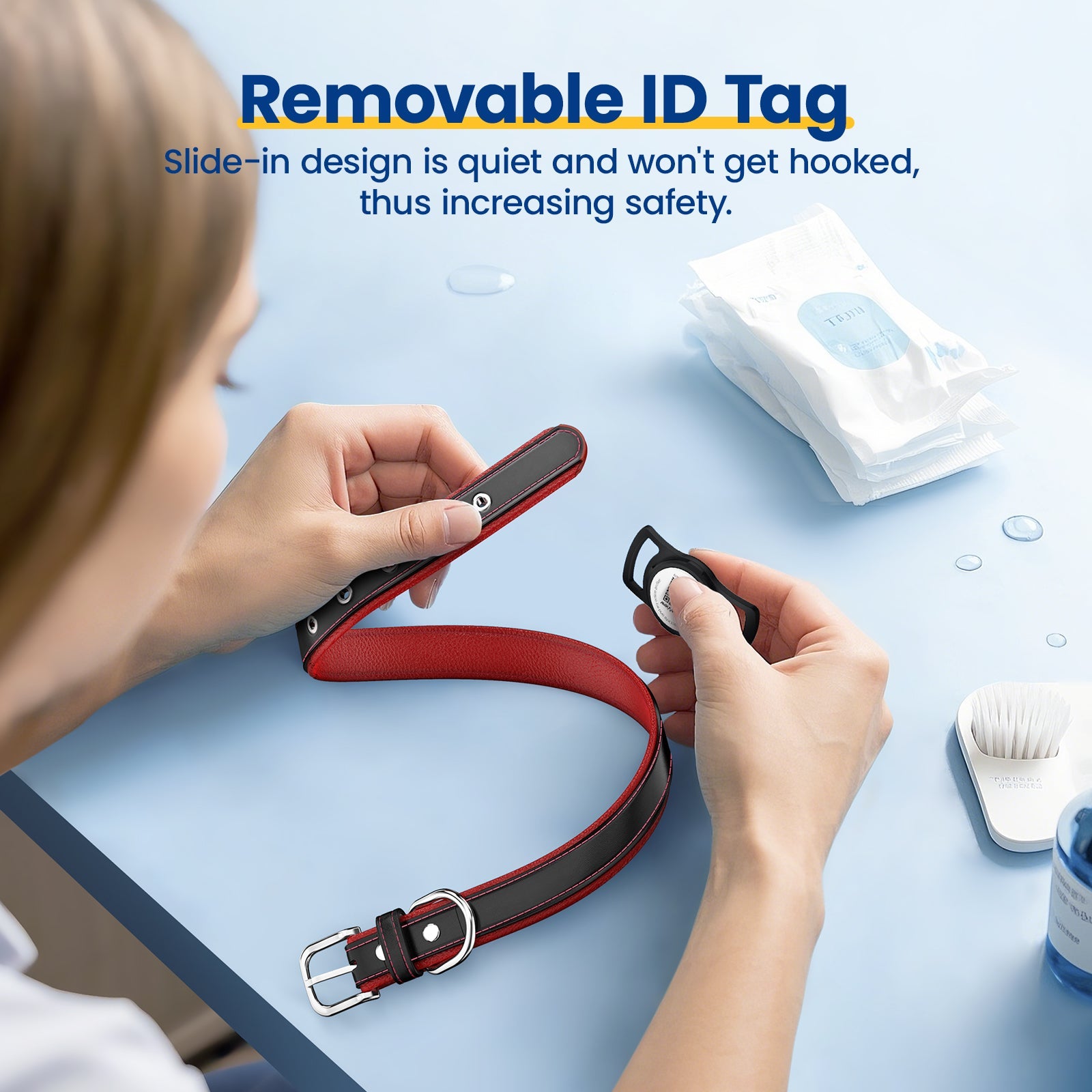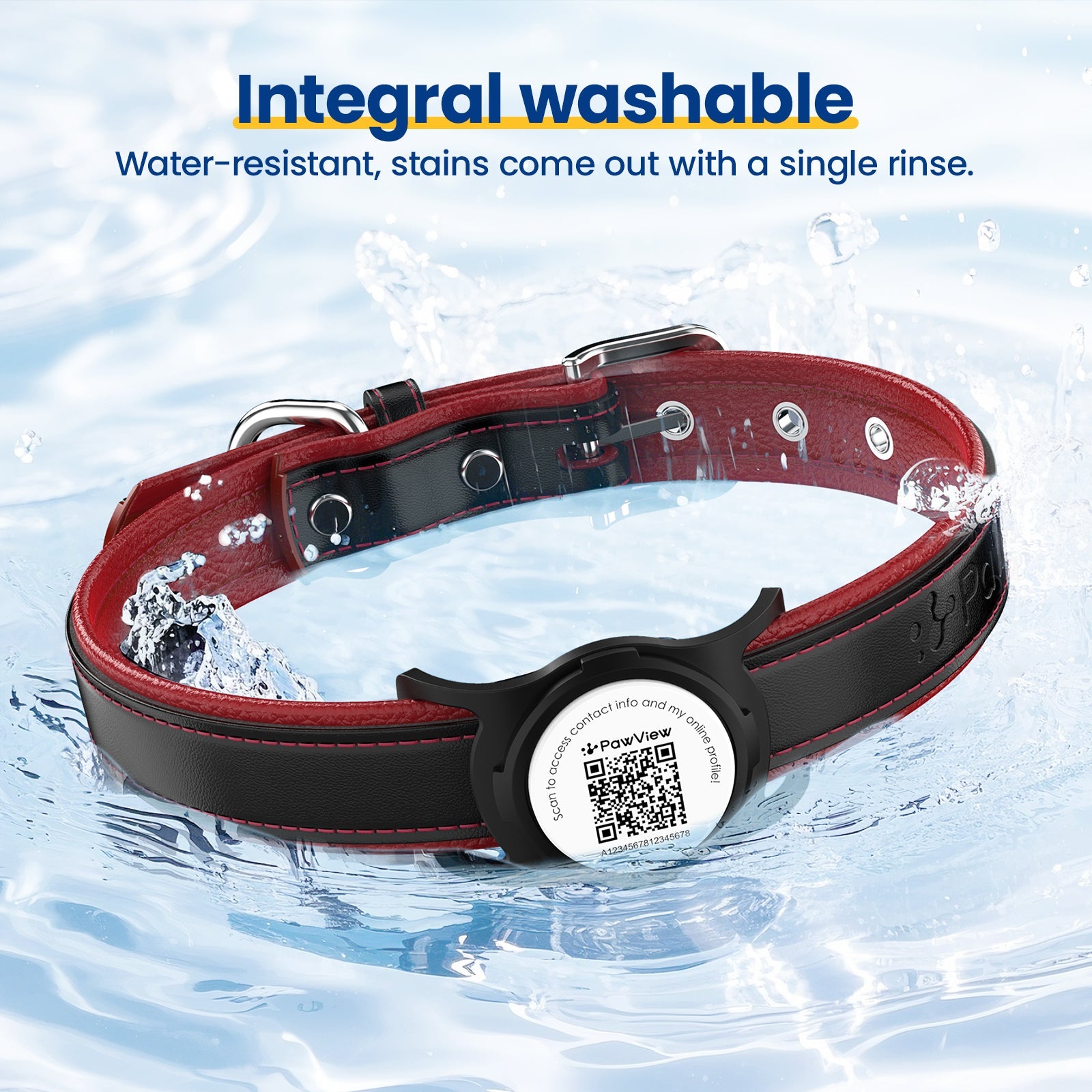 PawView Genuine Leather Collection Dog Collar with Smart AirTag Holder