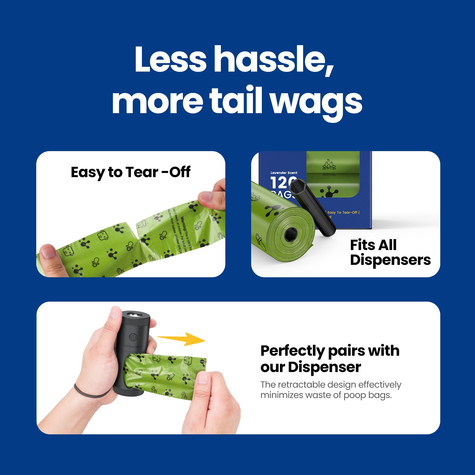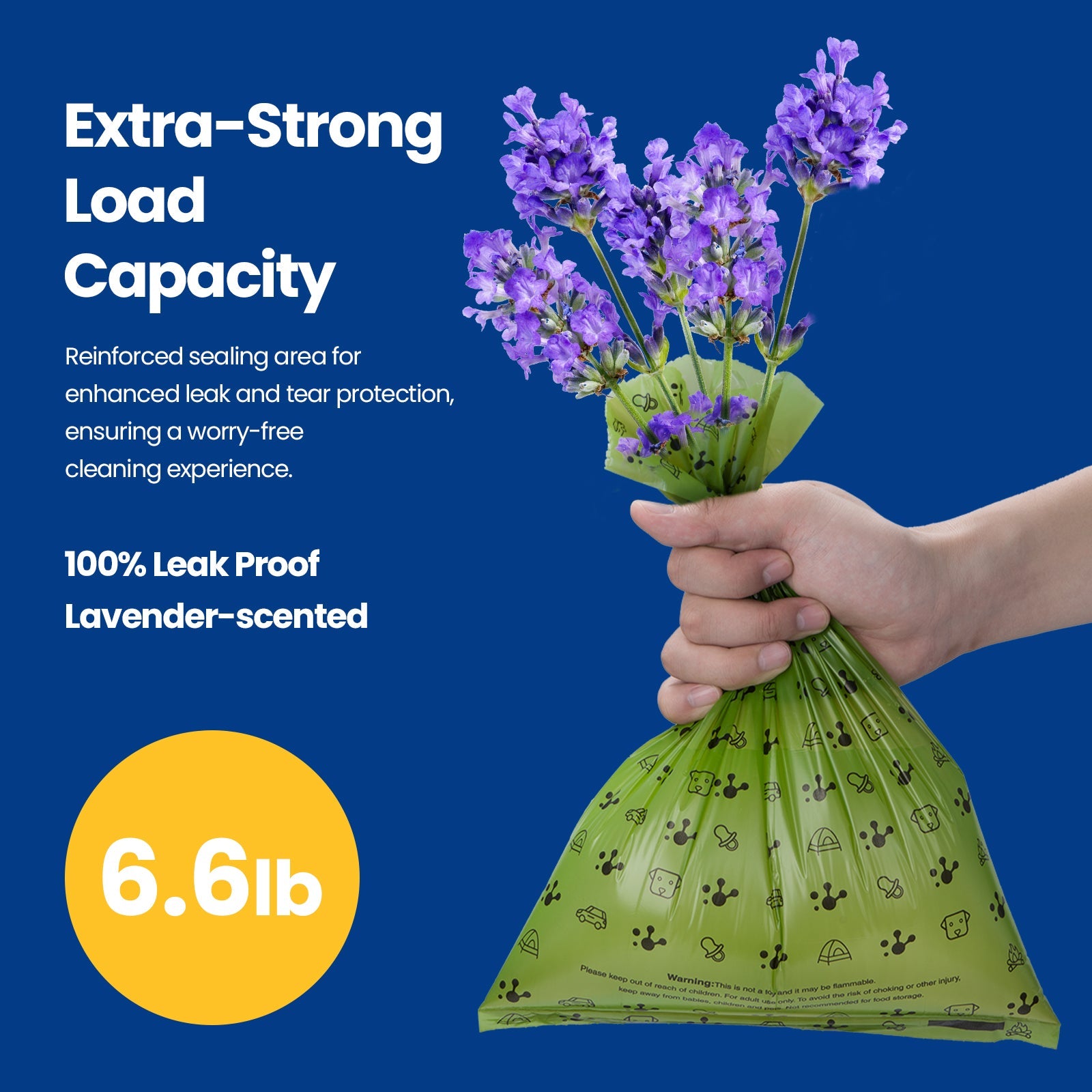 • LAVENDER FRESHNESS WITH EVERY BAG: Infused with a calming lavender scent, our doggy poop bags lock in odors, keeping your walks fresh and pleasant from start to finish