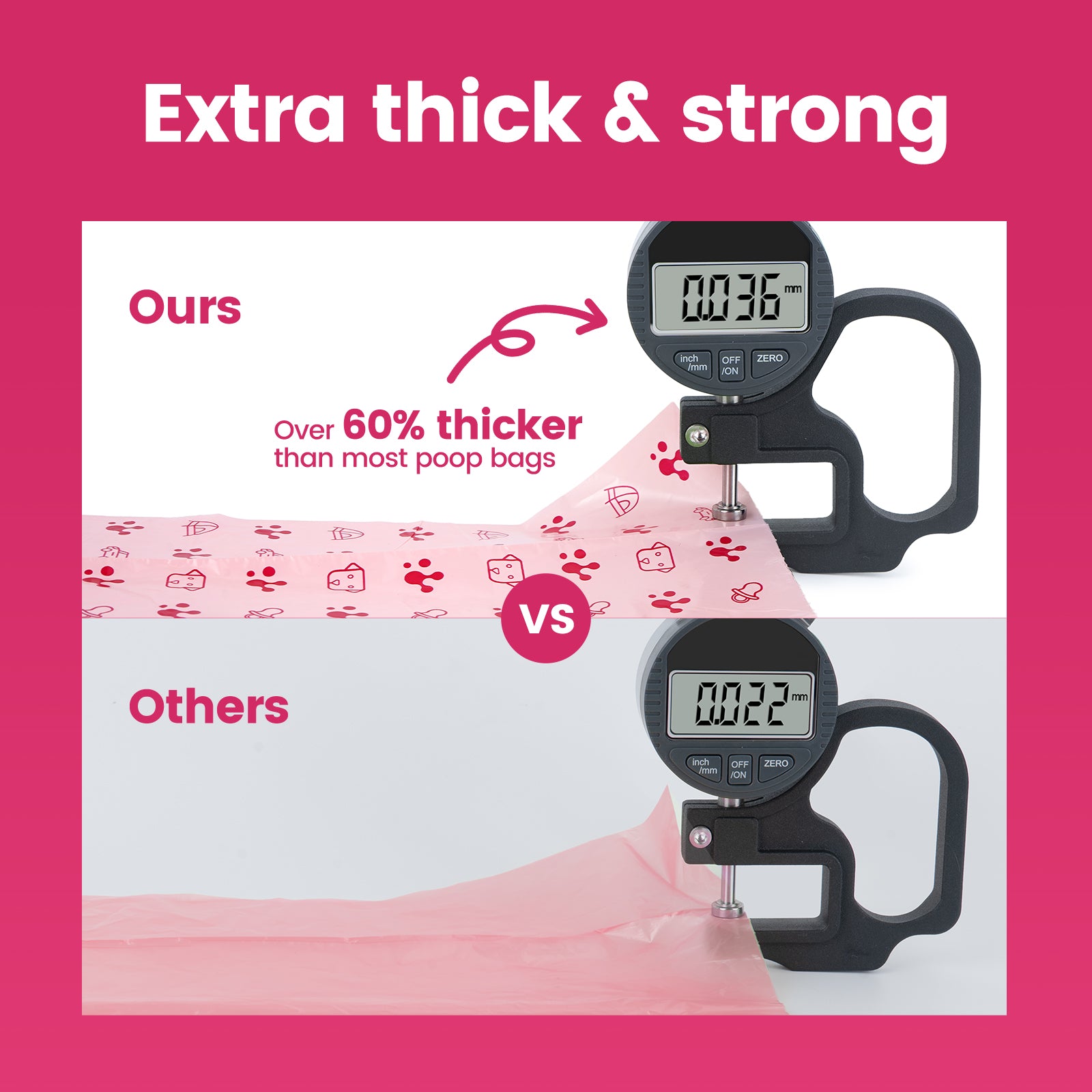 • STRONG AND LEAK-PROOF FOR PEACE OF MIND: Our doggie poop bags are made from thick, sturdy material, ensuring 100% leak-proof protection for worry-free cleanups