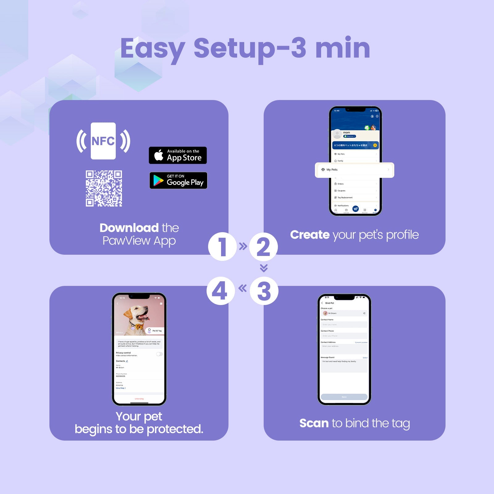 PawView Silent Silicone Smart Pet ID Tag – Dog-shaped, QR Code & NFC