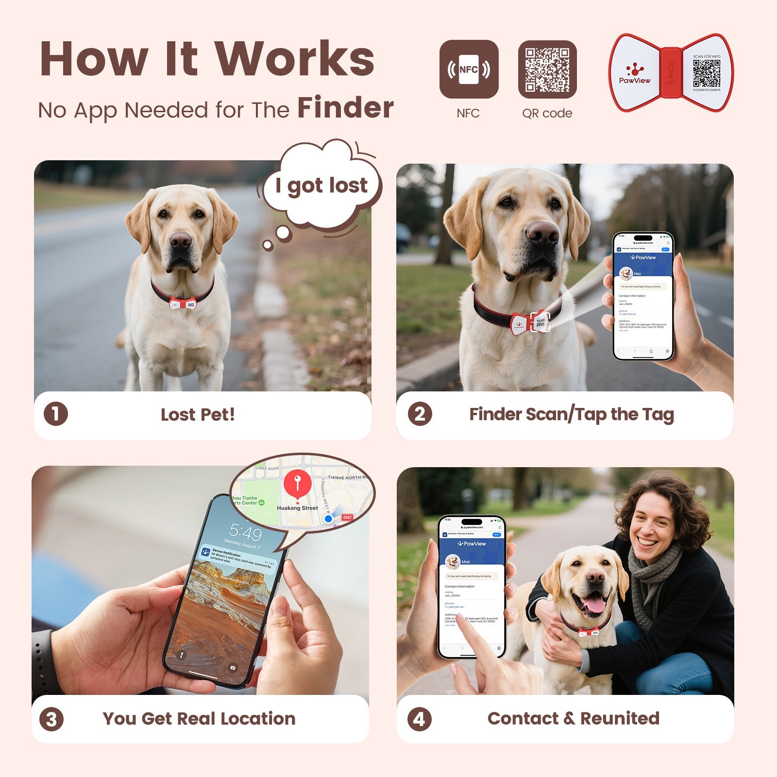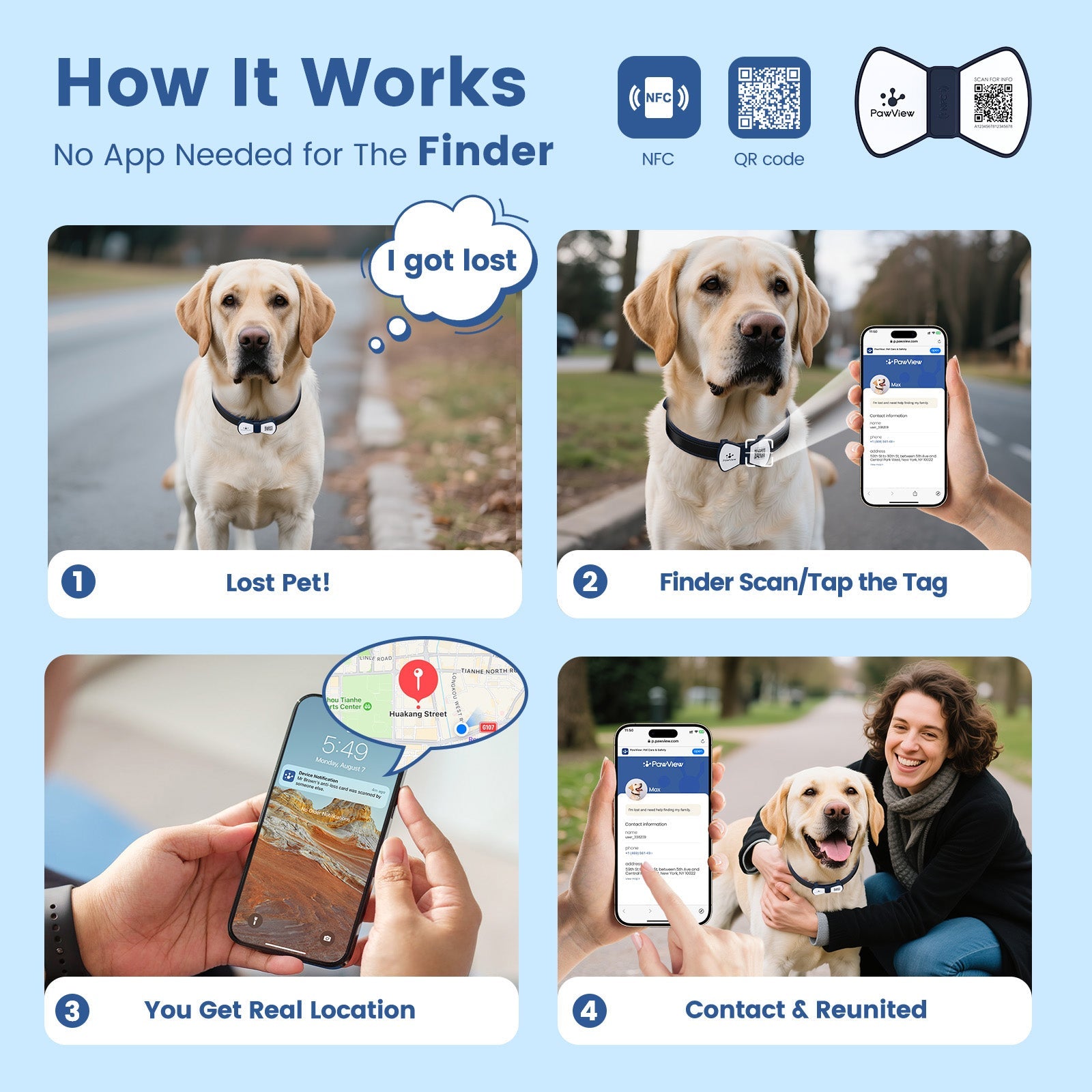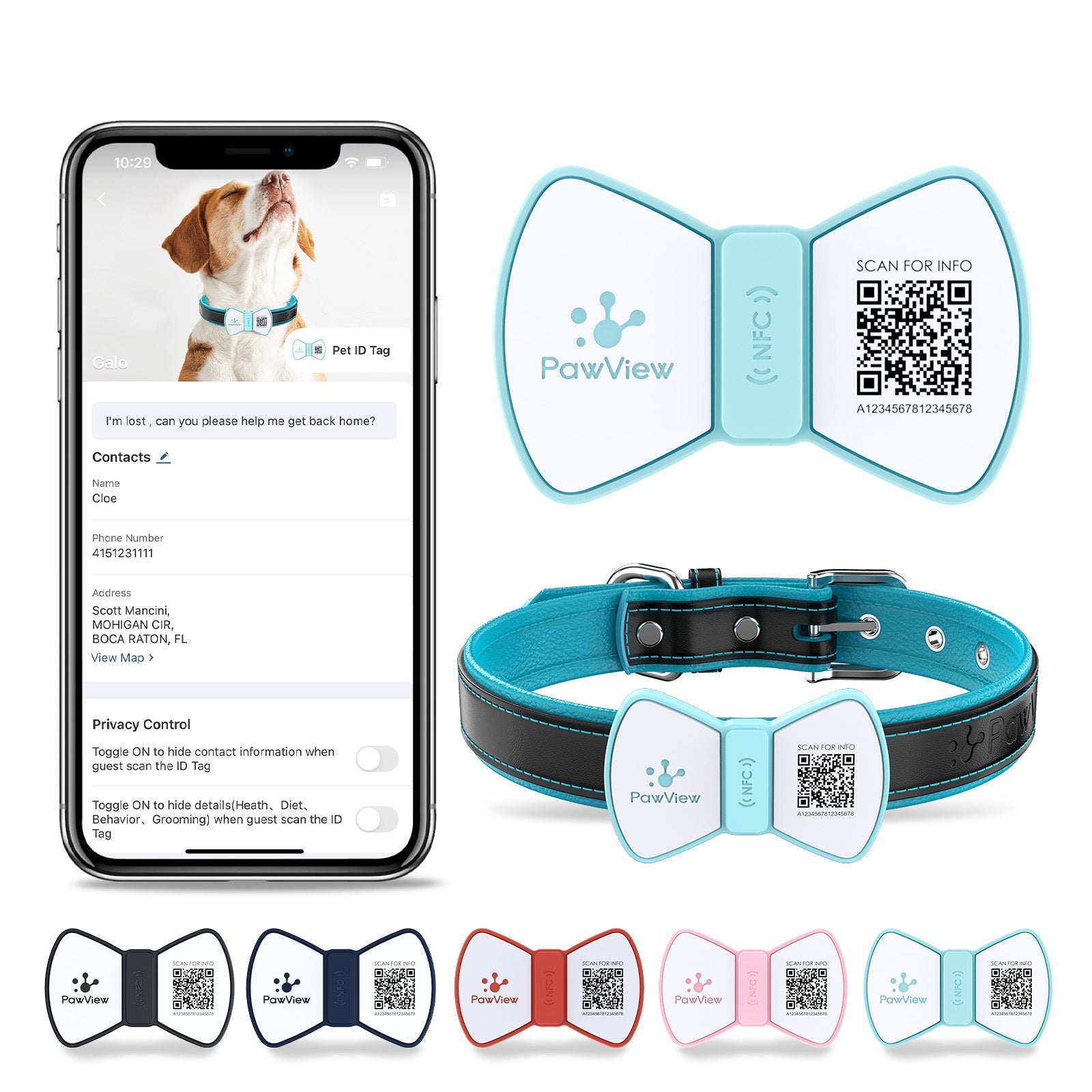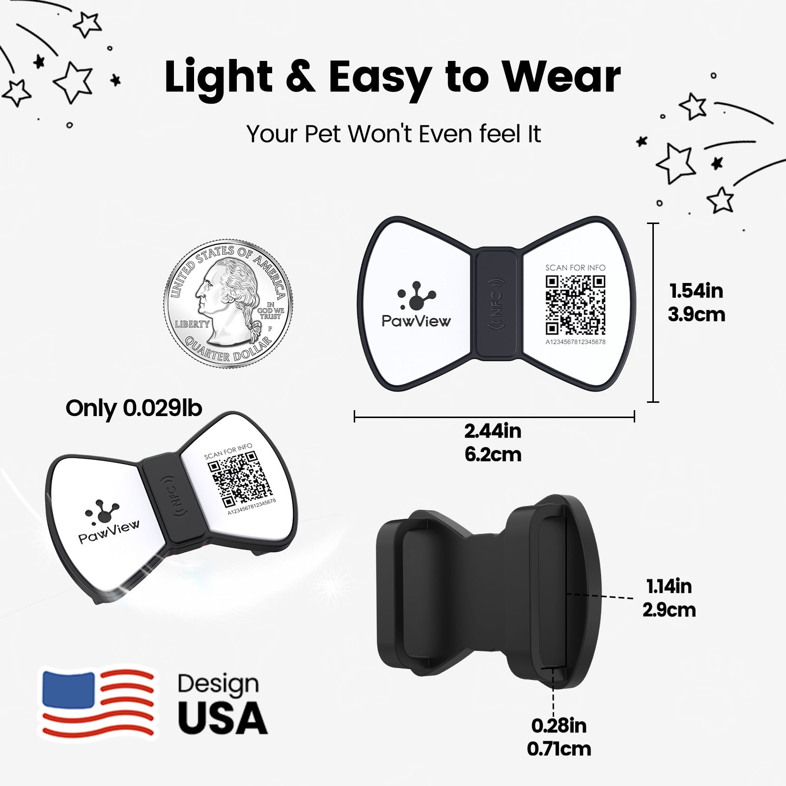 PawView Silent Silicone Smart Pet ID Tag – Bow Tie Style, QR Code & NFC