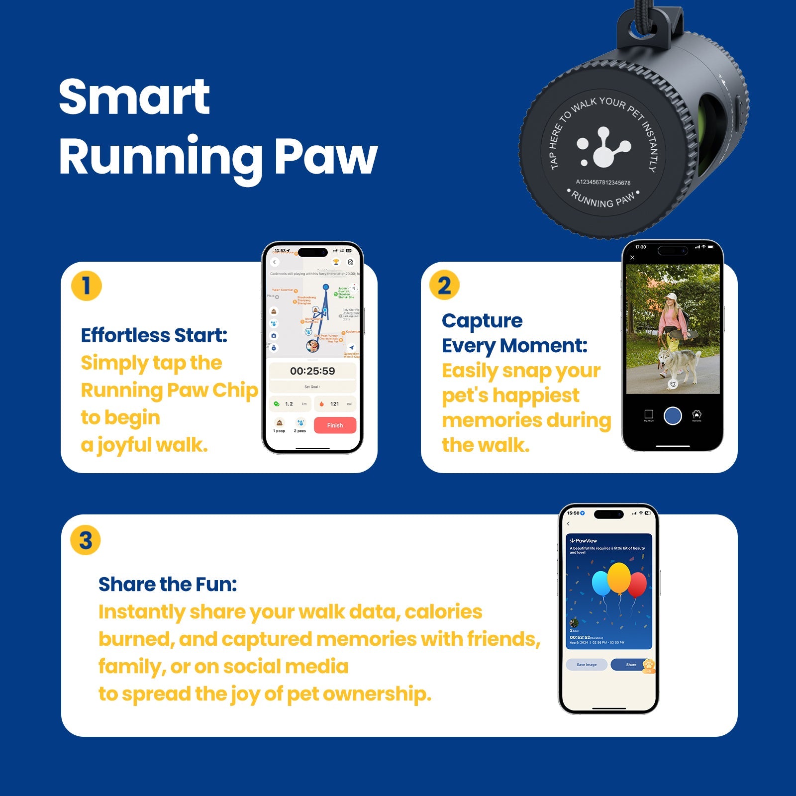 - EXCLUSIVE SMART WALK DATA RECORD: Use your NFC-enabled phone to simply tap the Running Paw chip on the poop bag dispenser, you can instantly start recording the walking duration and calories burned. At the end, share your pet’s activity data with a single click! Elevate your walking experience and unlock a new level of pet care today!