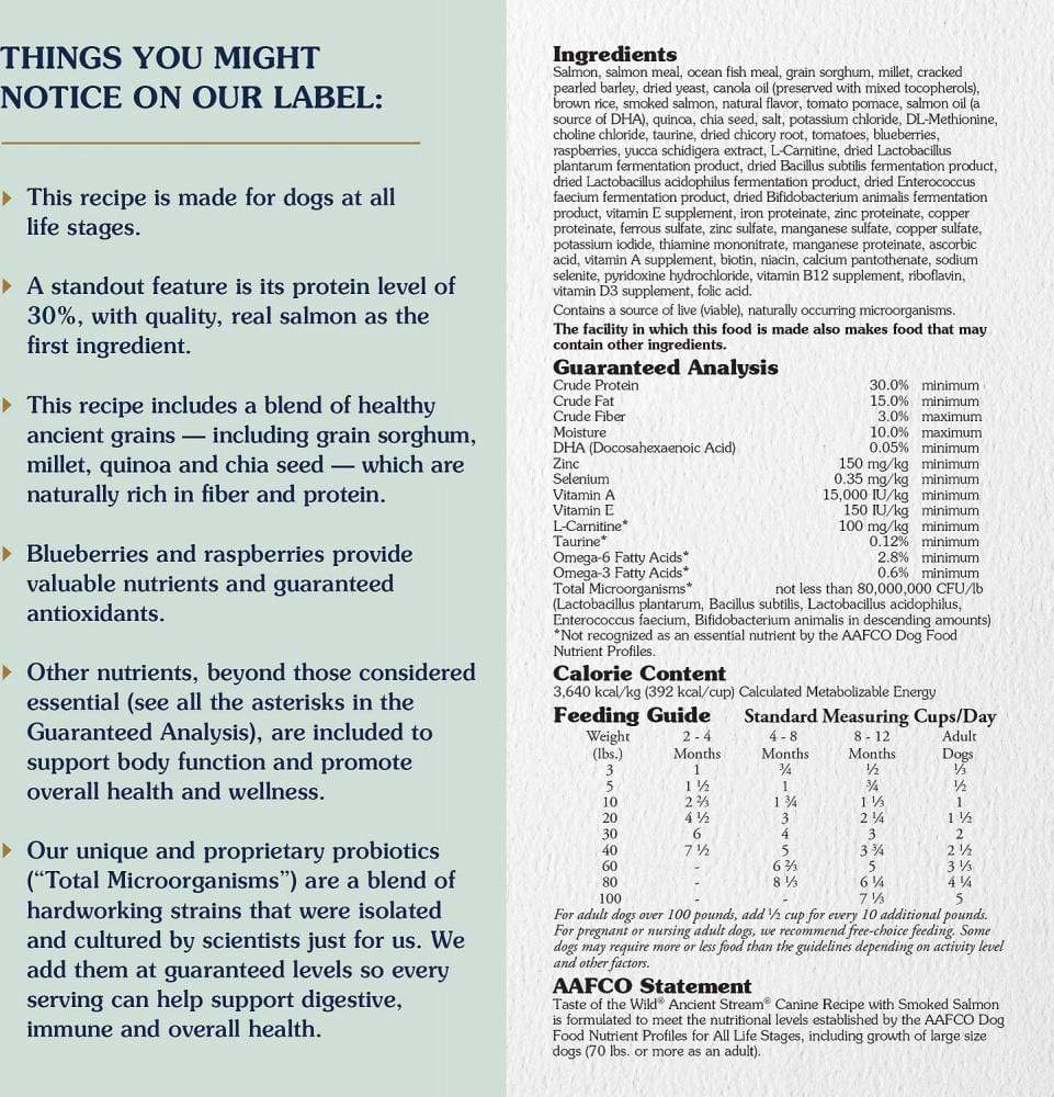 our classic Taste of the Wild flavors, we鈥檝e expanded our offerings to bring the Wild to more pets. Ancient grains 鈥?including grain sorghum, millet, quinoa and chia seed 鈥?are high in protein and rich in fiber. These grains have been trusted for thousands of years to provide vitamins, minerals, antioxidants and omega fatty acids, and by including them in Taste of the Wild with Ancient Grains, they support strong, healthy dogs at all life stages.