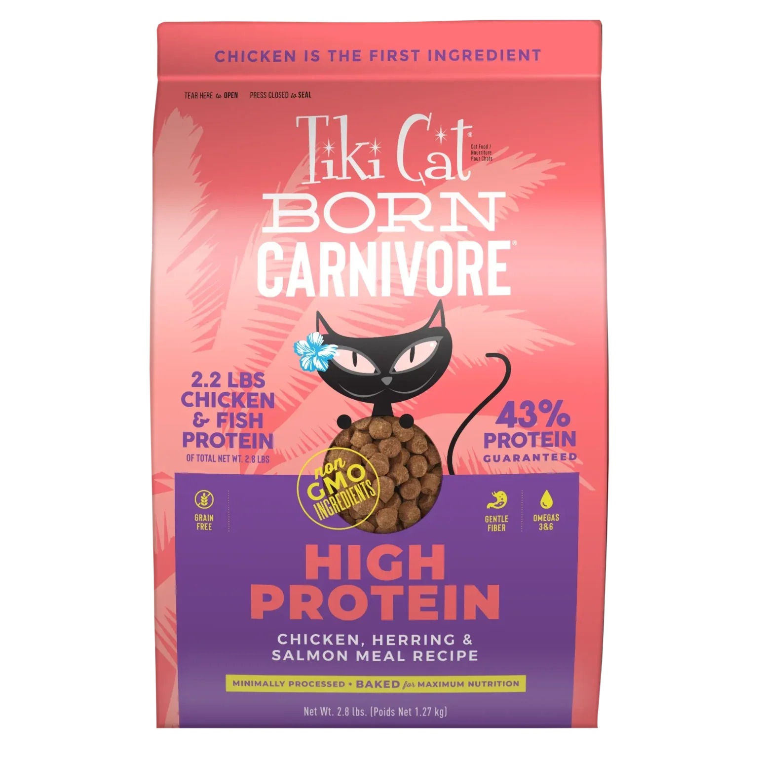 Tiki Cat Born Carnivore® High Protein: Chicken, Herring & Salmon Recipe 2.8-lb, Dry Cat Food