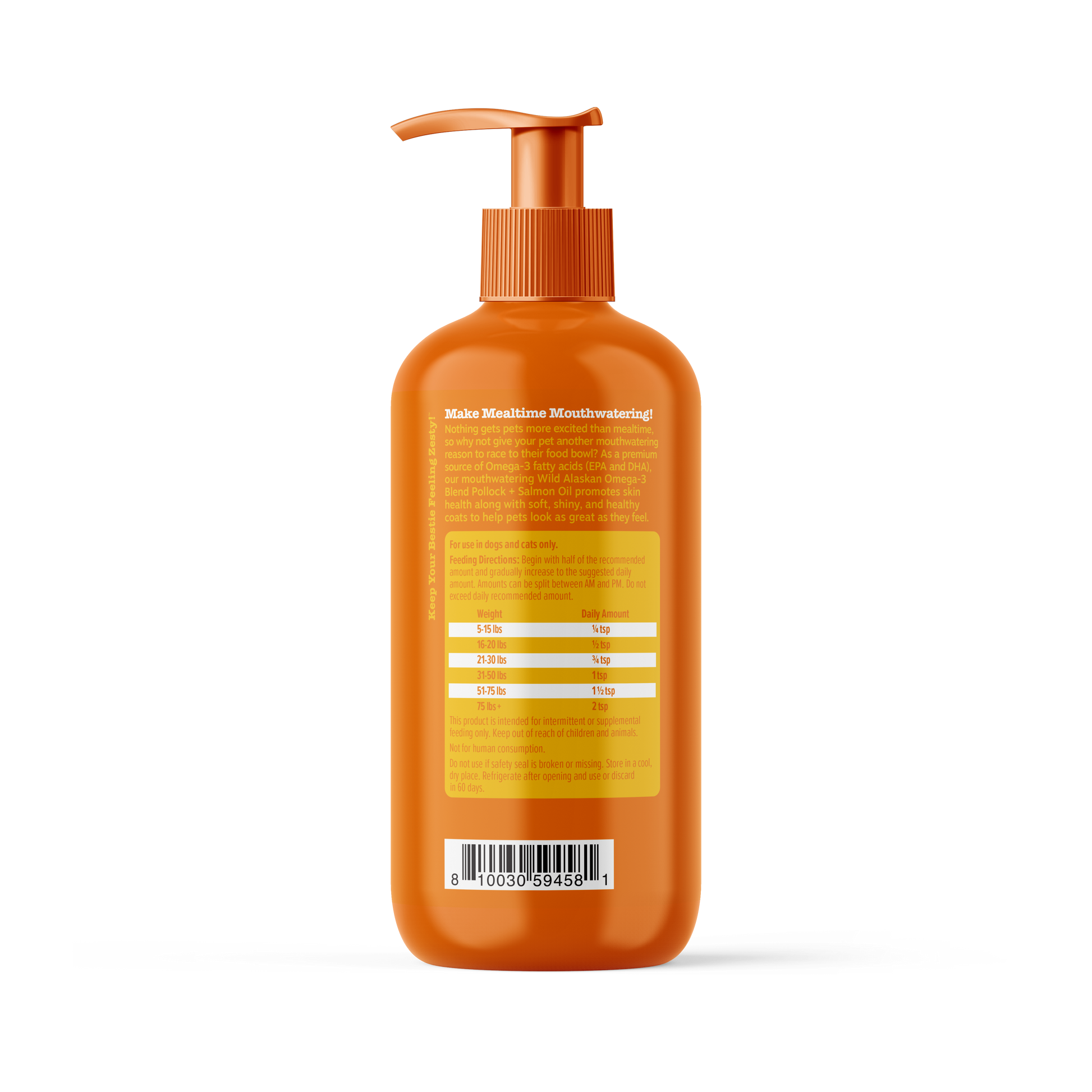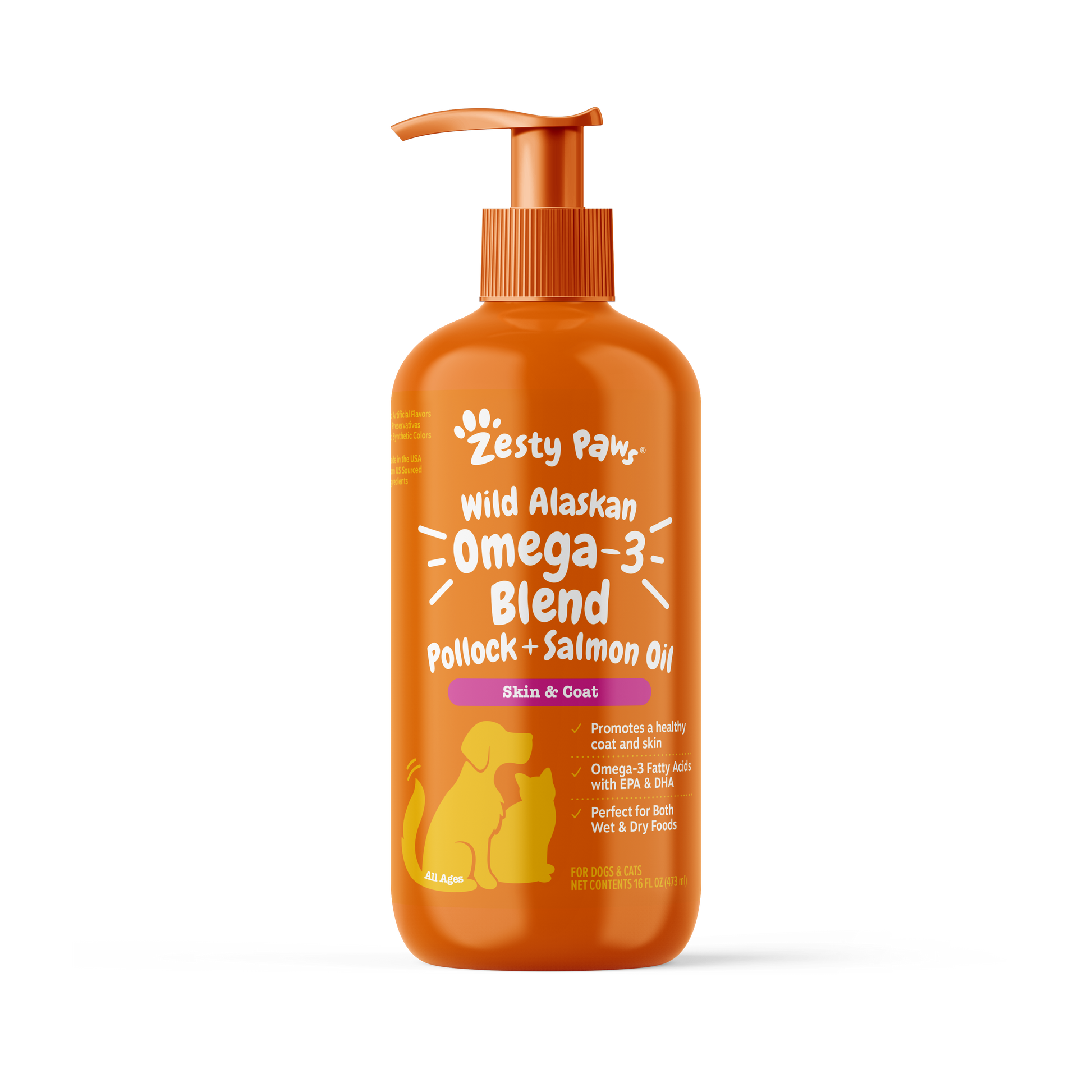 - The Zestiest Catch for Your Pet - Zesty Paws Wild Caught Alaskan Salmon Oil is a liquid fish oil that provides Omega-3 Fatty Acids (EPA and DHA) that support your pet’s skin and coat health.