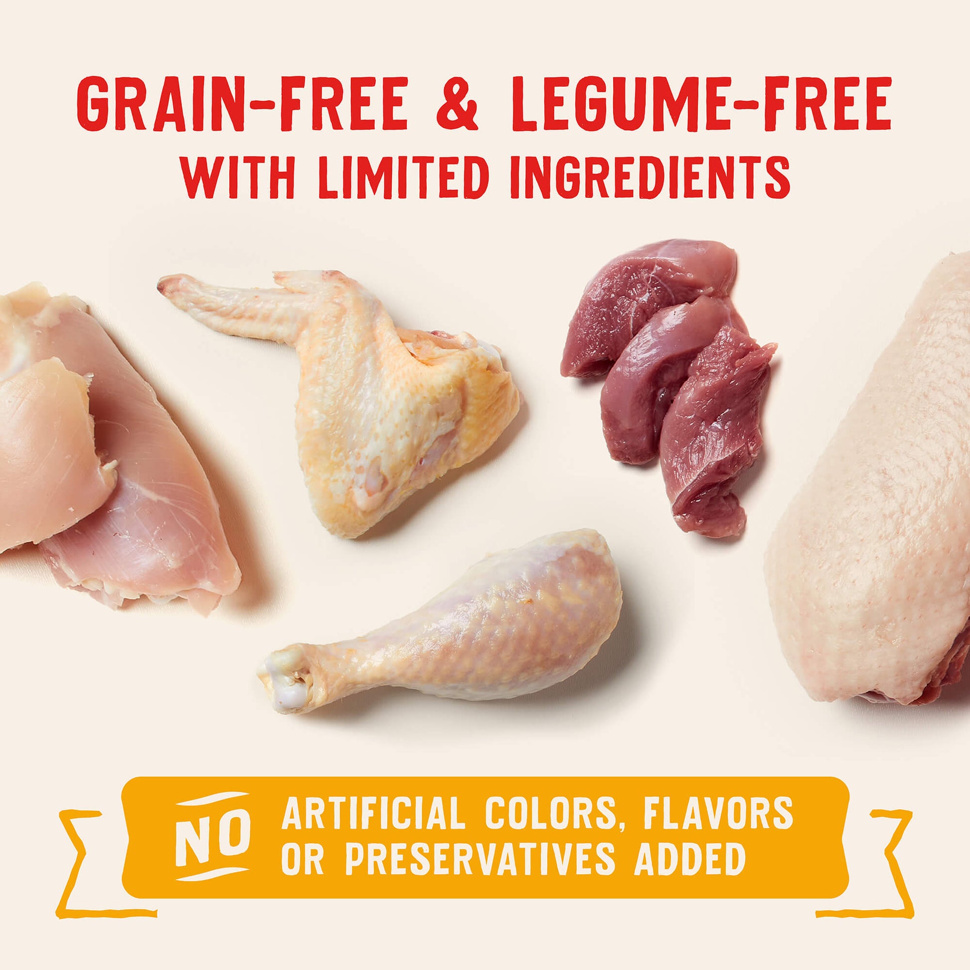 - No grains, peas, lentils, artificial colors, flavors or preservatives added