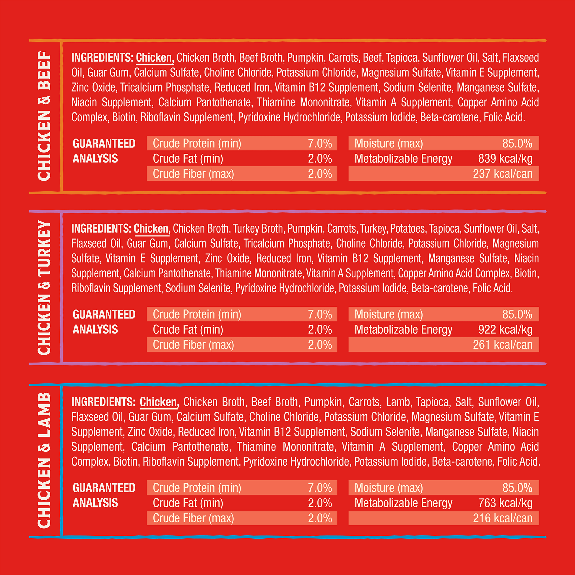 - No grains, peas, lentils, artificial colors, flavors or preservatives added